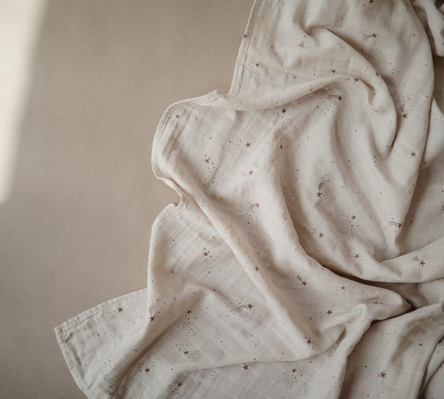Nursery Essential: Nap time just got so much more cozy with the Mushie muslin baby swaddle – ideal for swaddling, nursing, and cuddling your baby.